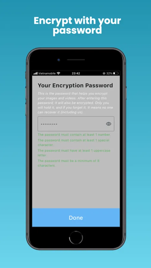 The application supports encrypted photo capture and storage exclusively on your device, ensuring that only you can decrypt them, even including us. So, please remember your encryption password carefully.