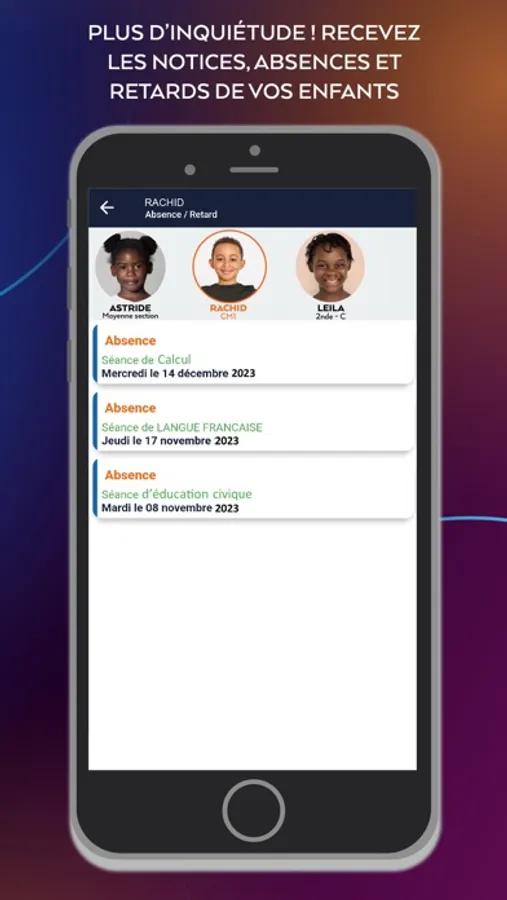 Envoyez des SMS de toute nature aux parents (absences, retards, événements, rappel de paiements, etc.).