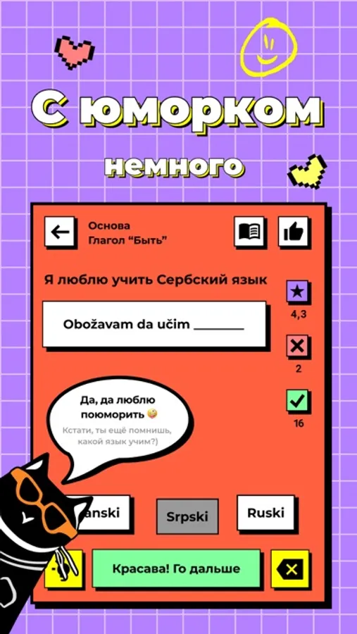 Вы постепенно, от самых азов до более продвинутого уровня, будете выполнять короткие задания. Они помогут довести до автоматизма языковые конструкции и не задумываться, какую в каждом случае употребить.