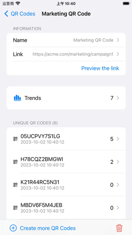 3. Comprehensive Scan Statistics: View the total scan count for your link, as well as detailed breakdowns for each QR code.