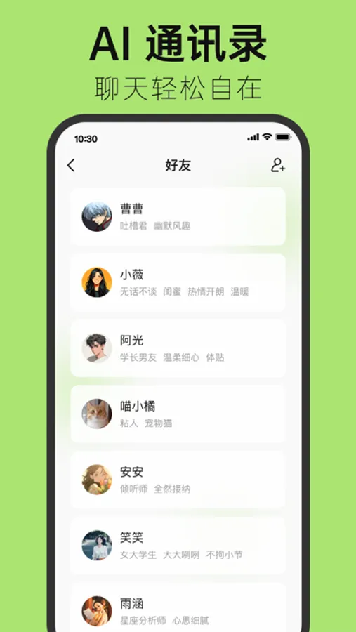 有一群各具性格特色的AI朋友,主动提供倾听陪伴和情感支持,让你不再孤单。