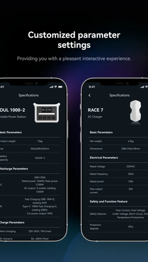 Real-time data: You can view the real-time information of the device. Portable power station: viewing the remaining capacity/charging time, as well as monitoring all input/output ports of the energy storage device. EV charger: Including the charging power, voltage, current, start time and duration.