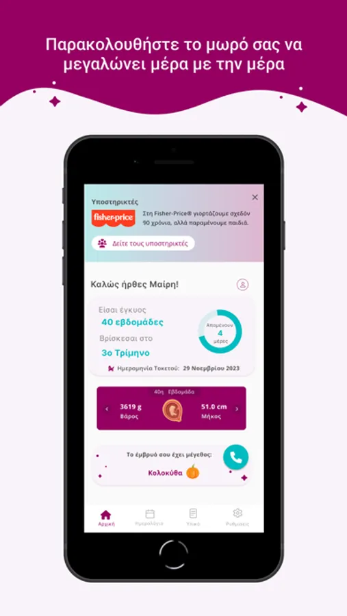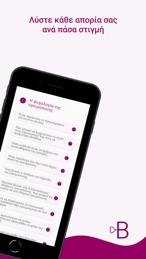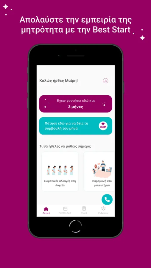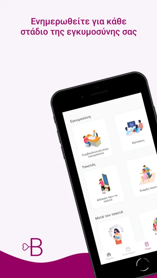 γονεϊκότητα, μέσω της παροχής ενημερωτικού υλικού στον χρήστη της εφαρμογής.