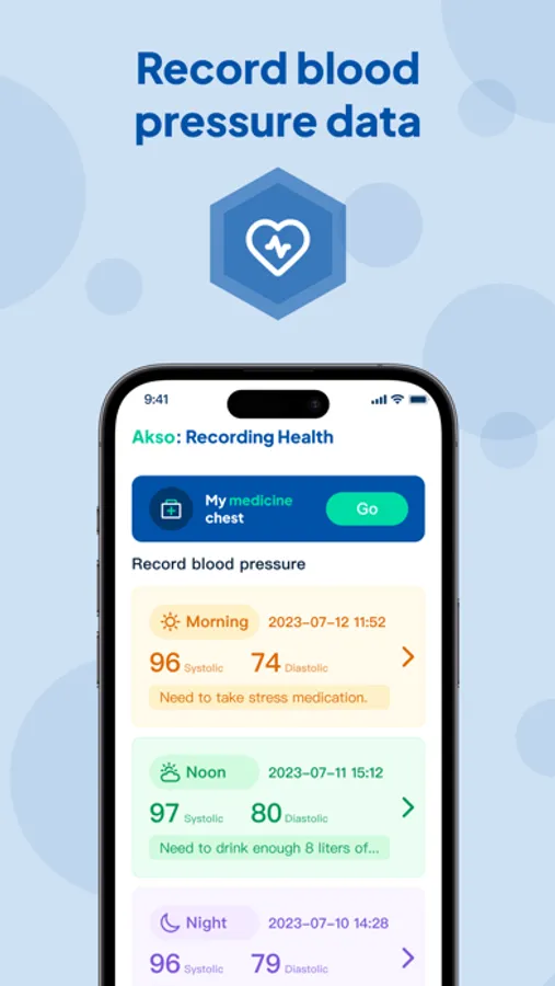 Introducing "Akso: Recording Health"! It's a powerful app that provides comprehensive blood pressure management and health reminder services for you.
