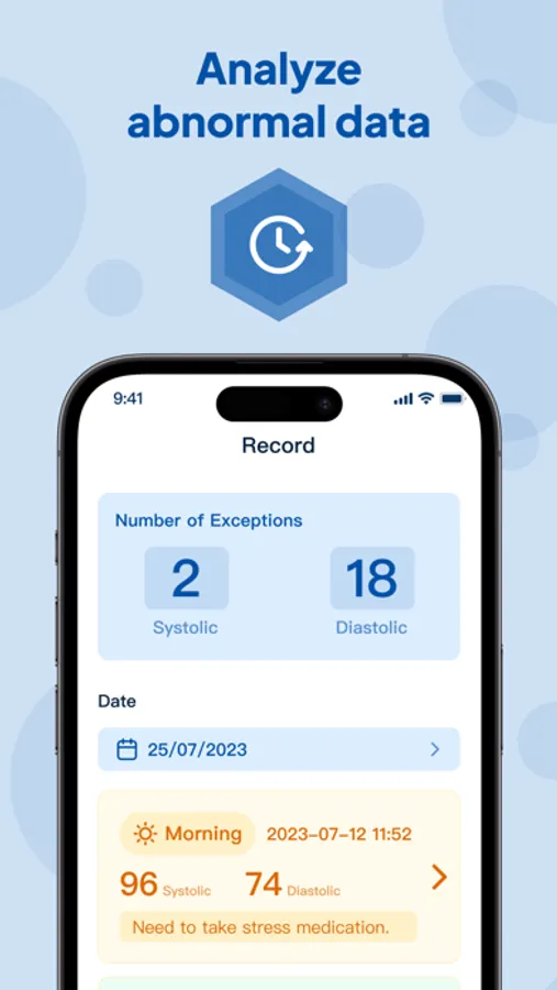 Abnormal Data Analysis: Monthly statistical reports on any abnormal blood pressure readings you may have, helping you understand your health.