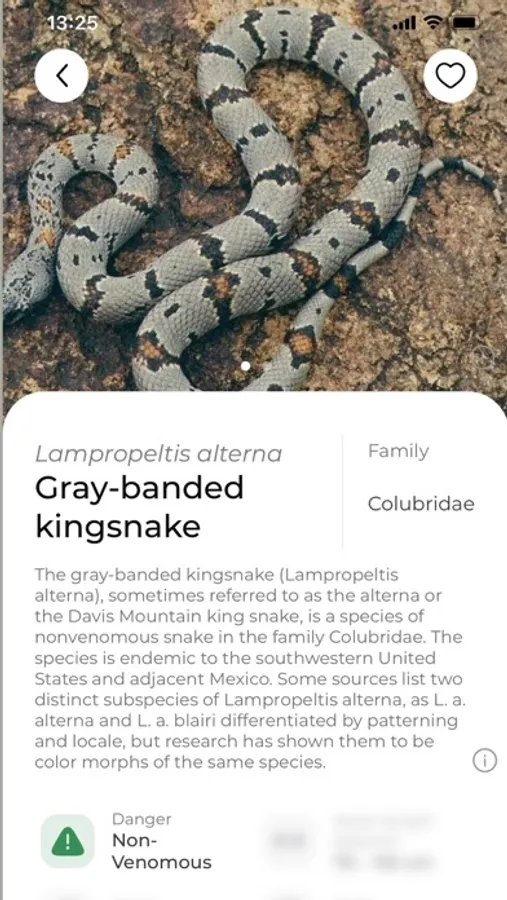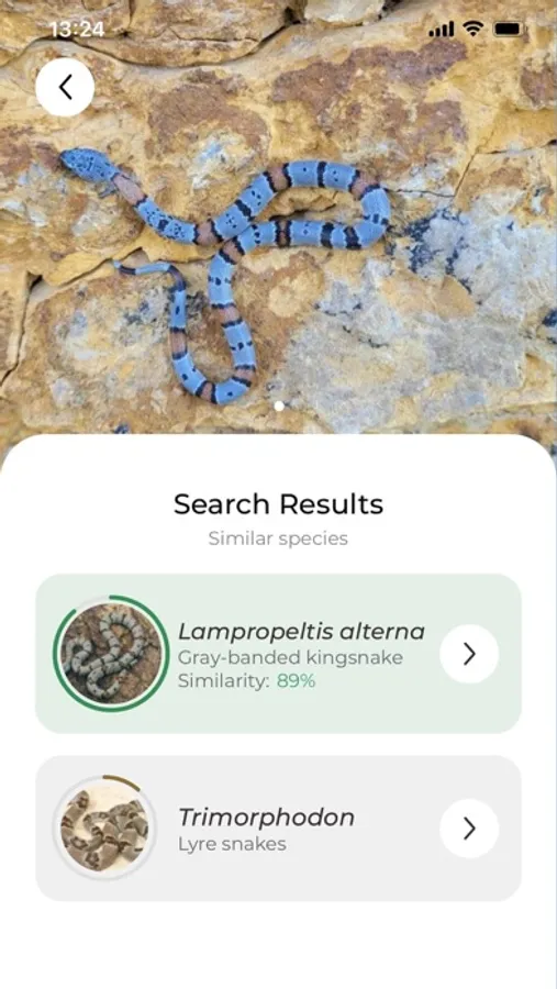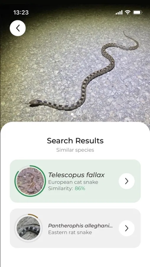 Snake name helps you to identify snakes and similar animals which you encountered in nature or in captivity. It can identify around 800 snake species from around the world and the overall accuracy is 78 %. Take a photo or upload a photo of a snake you took in the past and wait for the identification! Providing a location of the photo helps to improve the accuracy of the identification (it applies to photos taken in nature). After identifying the snake species, Snake name provides a species card or genus card with basic information about venom, fangs, size or range. Make sure to keep a safe distance from snakes while photographing them and have fun while learning more about these amazing reptiles! Snake name was developed in cooperation with Living Zoology. Founders of Living Zoology are Matej and Zuzana Dolinay - zoologists, wildlife filmmakers and photographers who produce educational videos and documentaries about snakes: https://www.youtube.com/@LivingZoology/videos