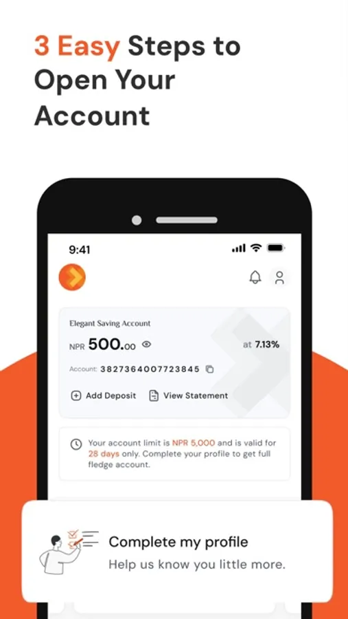 Get a fully functional bank account in just 5 minutes with OrangeNXT. Skip the need to visit the bank, long paperwork, and complex processes. With just a few taps from your smartphone, you'll have your account ready, making it quick and easy to start managing your money on the go.