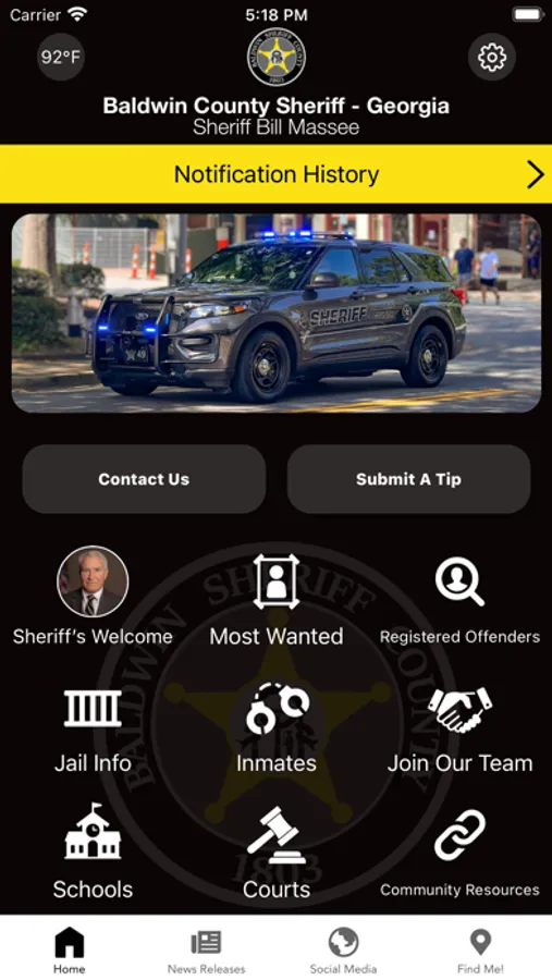 The Baldwin County Sheriff’s Office (GA) mobile application is an interactive app developed to help improve communication with area residents. The Baldwin County Sheriff App allows residents to connect with the Baldwin County Sheriff’s Office by reporting crimes, submitting tips, and other interactive features, as well as providing the community the latest public safety news and information.