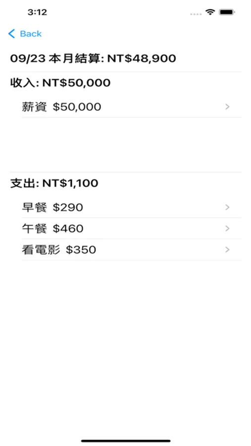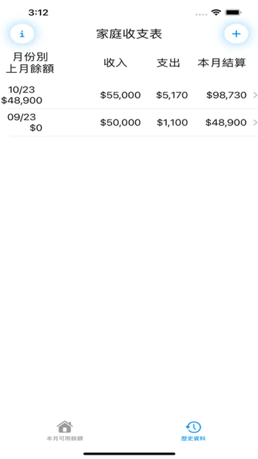 5. Historical data is statistically organized by month, showing income/expenditure details for each month, and can be updated at any time. (You can see which month you spent more and here the money went.)