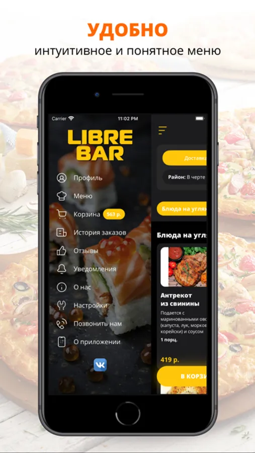 Приложение Libre Bar | Ижевск — это удобный способ заказа еды домой или в офис. Всегда в нашем меню - вкусные роллы, пицца, бургеры, блюда на углях, европейская и паназиатская кухня.