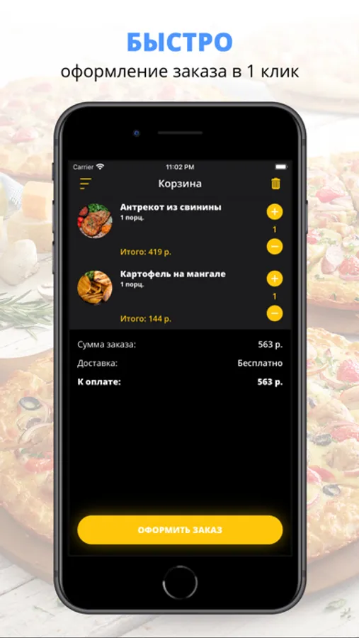 Скачивайте наше приложение, оформляйте заказ и наслаждайтесь любимой едой, где бы Вы ни были! Приятного аппетита!