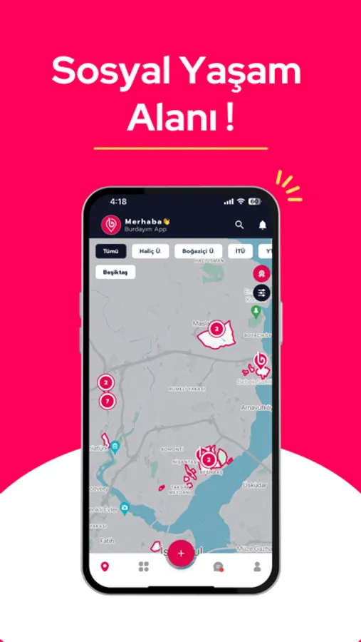 Burdayım App, size yakındaki etkinlikleri ve deneyimleri harita üzerinden keşfetme şansı sunuyor. Yüzlerce etkinlik arasından seçim yapın ve arkadaşlarınızla veya yeni insanlarla unutulmaz anlar yaşayın.