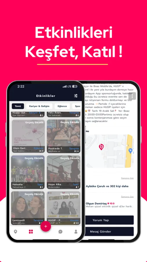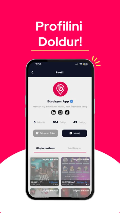 Ayrıca etkinliklerinizi de kolay bir şekilde açabilir, yeni insanların ilgi alanlarına göre etkinliğinize davet alabilirsiniz.