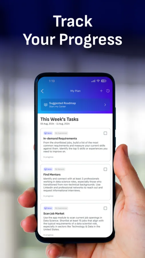 Chart your path with personalized steps to land your next opportunity—no matter where you are. Our AI-driven approach guides you through milestones, ensuring you stay on track toward your goals.