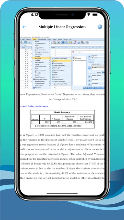 Whether you're delving into the realm of descriptive statistics for a clear snapshot of your data, harnessing the power of inferential analysis to draw meaningful conclusions, or navigating the intricacies of regression models, this app has you covered. From data management techniques to exploring binary logistic regression, Poisson regression, multinomial regression, and more, it offers step-by-step guidance, insightful explanations, and practical tips to help you unlock the full potential of your data analysis endeavors. Empower yourself with the knowledge and tools needed to make informed decisions and uncover valuable insights with the SPSS iOS app.