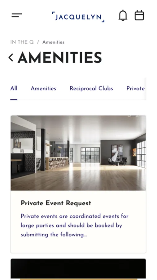 A private mobile app for the members of the Jacquelyn to browse club information, make reservations, book events, and manage membership.