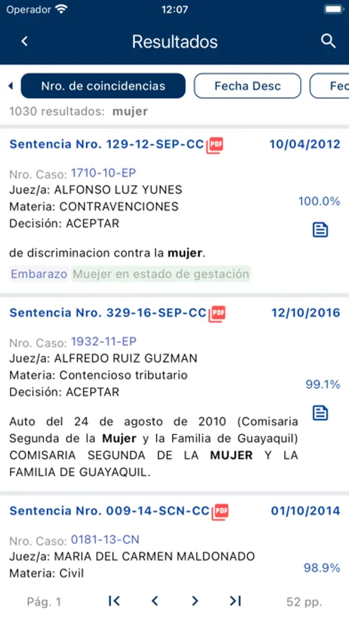 La aplicación de la Corte Constitucional de Ecuador ofrece las siguientes funcionalidades: un buscador de sentencias, un buscador de casos, un casillero electrónico y un calendario de eventos. Con los buscadores de sentencias y casos, puedes buscar sentencias y casos específicos utilizando palabras o frases clave. Además, tienes la opción de acceder a tu casillero electrónico para revisar los expedientes de tus casos.