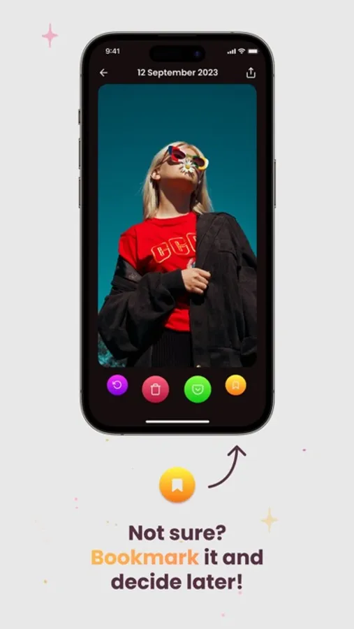 - Review: You can review deleted and kept pictures once you’re done swiping, just to make sure you’re happy with your swipes.