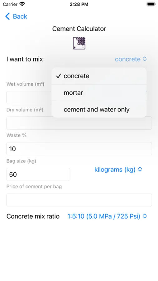 - Versatile Calculations: Easily compute volume, weight, and price for different concrete forms.