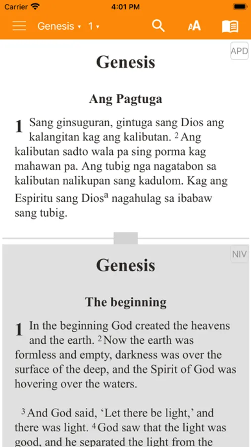 Biblica New International Version in English that can be read side-by-side or verse-by-verse with the Hiligaynon Translation.