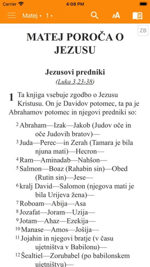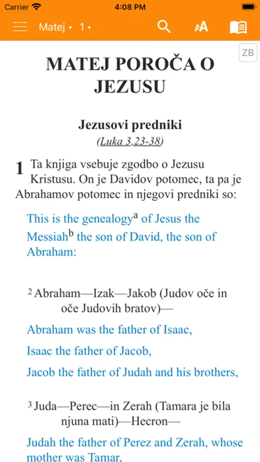 Aplikacija Sveto pismo, ki jo je razvil in objavil : Biblica