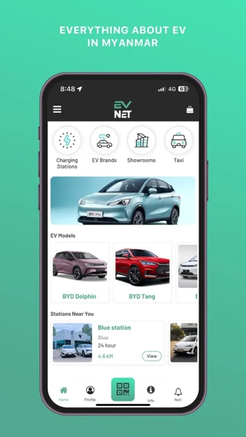 The EV NET mobile application stands as Myanmar's pioneer platform for purchasing electric vehicles, location charging stations, and engaging electric taxi services.
