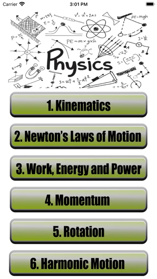 "Master physics with our comprehensive app! Dive into 6 in-depth chapters that cover Kinematics, Newton’s laws, Work, Energy, Momentum, Power, and Harmonic Motion.