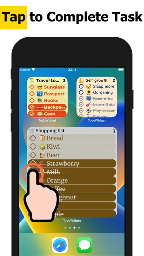 Leveraging the latest interactive widget features in iOS 17+, TodoWidget offers you the convenience of marking tasks as complete directly from the widget. This advanced functionality enhances your productivity, making task management more fluid and enjoyable.