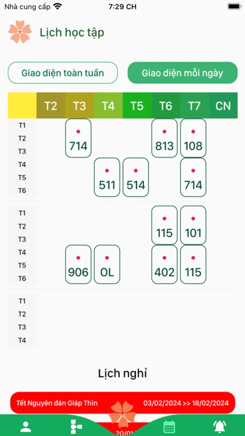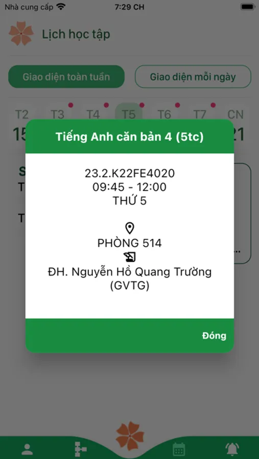 - Xem lại lịch học chi tiết và thông tin liên quan.
