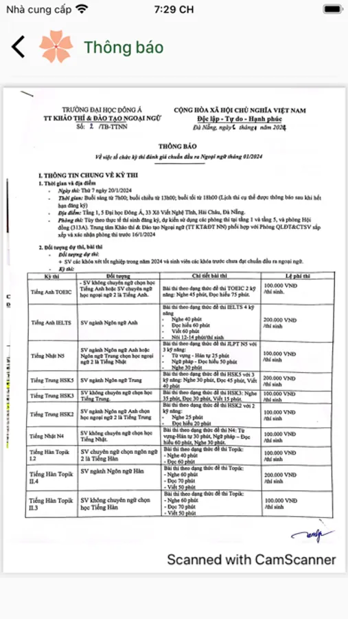 - Thông tin lịch thi để các bạn có thể tổ chức thời gian học tập hiệu quả.