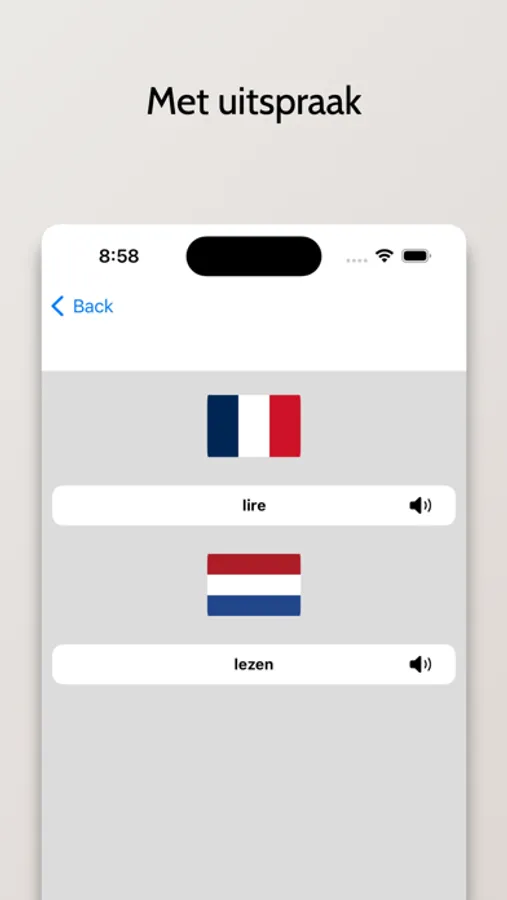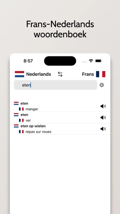 - Uitspraak van het woord in het Frans in de zoeklijst