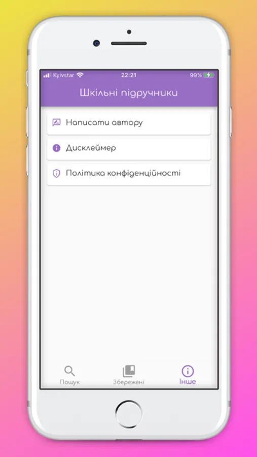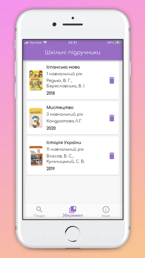- Можливість видалити завантажений підручник із пам'яті телефону