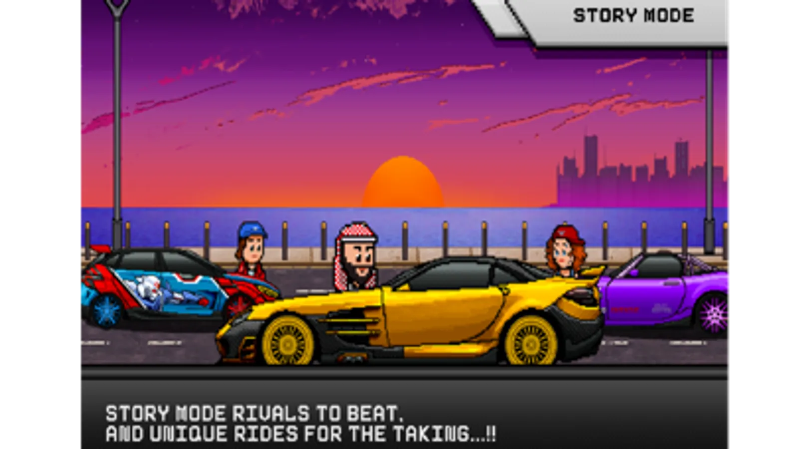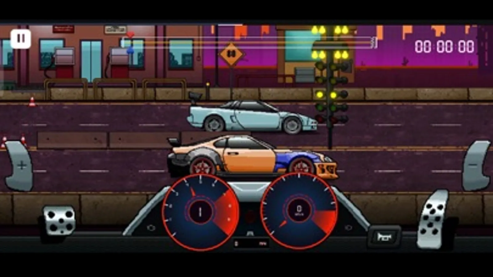 One of the most challenging drag racing pixel retro games with countless features to build cars, tune, and race with your favorite cars!
