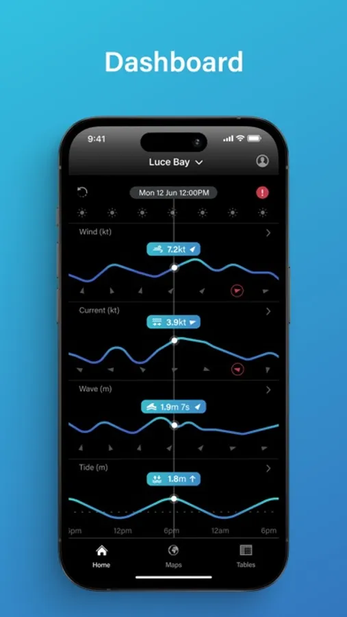- Advanced Dashboard: Analyse wind-against-current interactions, wave heights, tide cycles, and directions using accurate ECMWF wind forecasts.
