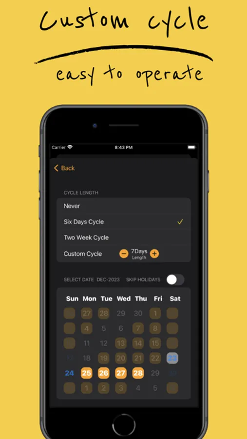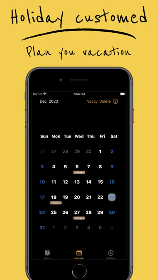 - Add custom holidays & day off