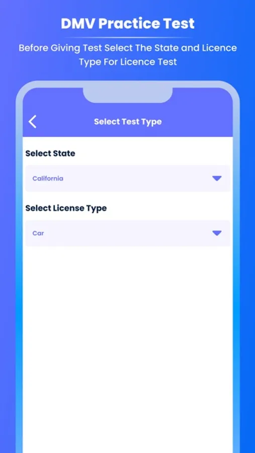 5. Before Giving Test Select The State and License Type For License Test.