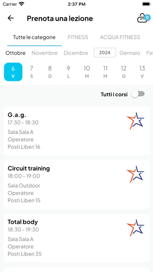 La tua esperienza sportiva - con la nostra App hai la tua palestra a portata di mano. Grazie alla nostra App potrai acquistare l'abbonamento che preferisci: corsi fitness, corsi in acqua oppure tutto incluso. Puoi scegliere tra varie opzioni, dall'abbonamento mensile a quello annuale, fino ai pacchetti personalizzati per le tue specifiche esigenze. E' possibile effettuare pagamenti sicuri direttamente dall'App, rendendo l'acquisto del tuo abbonamento veloce e senza intoppi. Sia che tu voglia prenotare una sessione di total body o una lezione di acqua gym, ora puoi farlo in pochi semplici clic. L'App mostra il calendario completo dei corsi disponibili, consentendoti di selzionare il corso desiderato e prenotare il tuo posto in anticipo. Non dovrai più preoccuparti di corsi prenotati o di perdere una lezione perché non eri a conoscenza dell'orario. All'interno della nostra App puoi inoltre gestire il tuo profilo personale e modificare i tuoi dati, oltre a monitorare il tuo abbonamento per verificare quali sono i corsi ai quali hai accesso e le lezioni che hai prenotato.