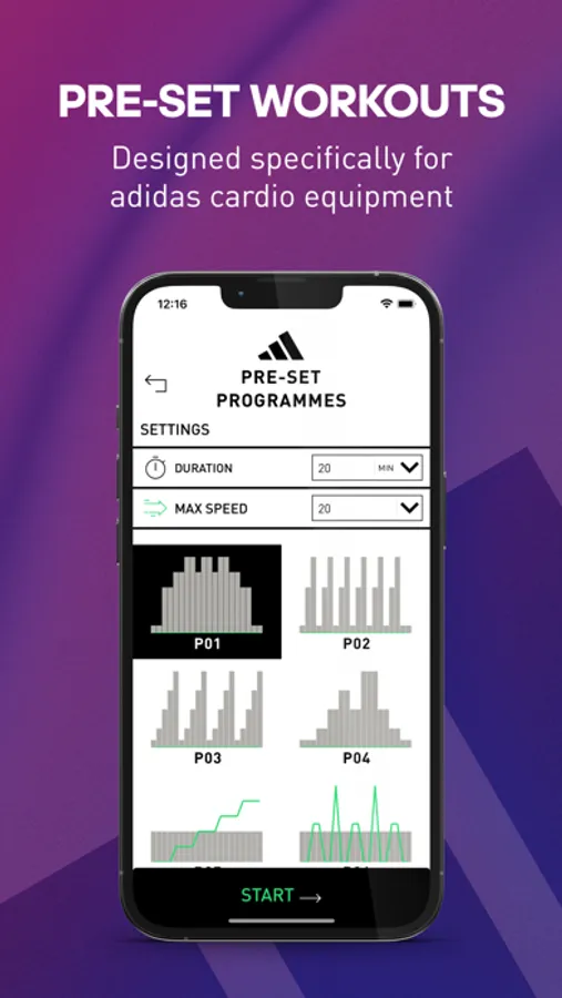 Discover a varied selection of ready-made programs designed exclusively for Adidas cardio machines. Challenge yourself and monitor your development through detailed performance reports, track the progress of your journey, and acquire valuable training insights. Furthermore, you can directly share fitness milestones on your social media platforms to celebrate each achievement.