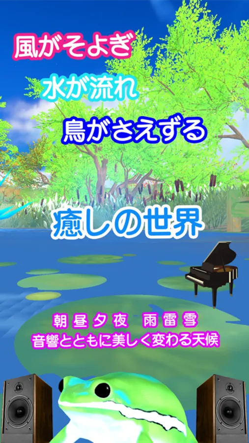 A soothing world of gentle wind, flowing water, and chirping birds.