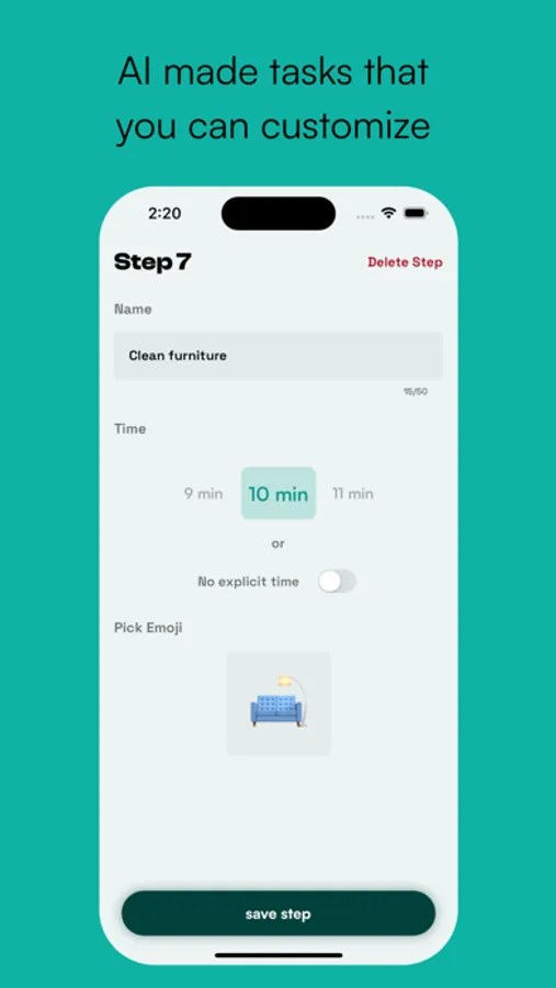 First, you enter a scary task and the app automatically estimates how long it will take and assigns it to a category. Then you can use the "magic subtasks" button to turn the task into a manageable list of steps. The best part? You can even add context about your life, which our AI will use to generate even better tasks.