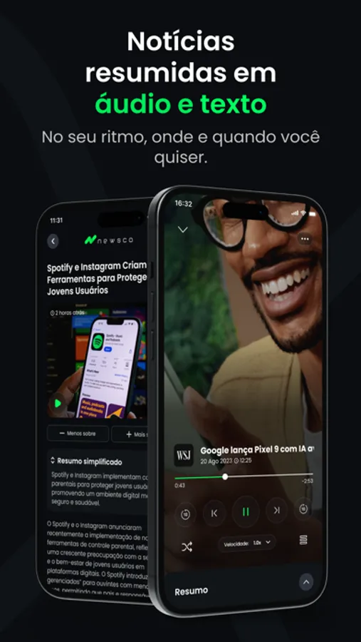 Poupe tempo com resumos inteligentes das principais notícias do dia – leia ou ouça, onde e quando quiser.