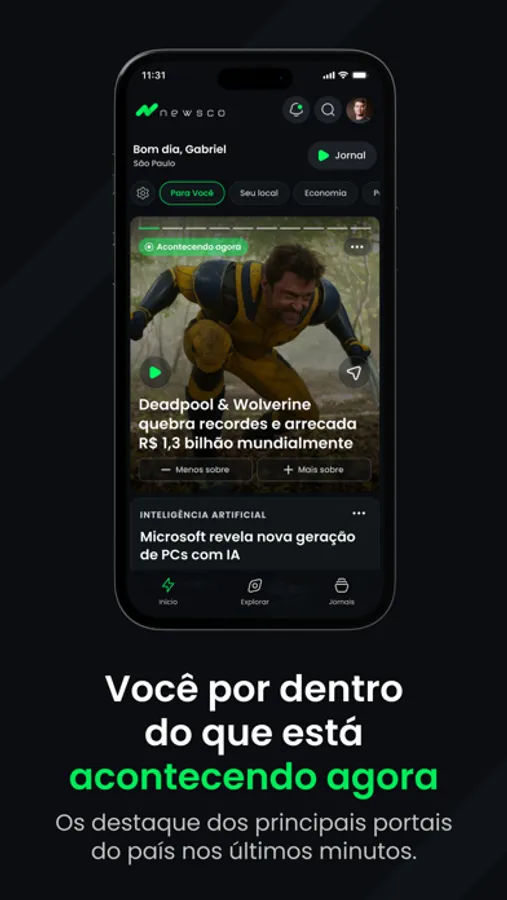 Com tanta informação disponível, encontrar notícias que realmente importam pode ser um desafio. A Newsco resolve isso por você! Nosso aplicativo usa inteligência artificial para aprender com você e refinar cada vez mais suas recomendações. Quanto mais você usa, mais relevante o conteúdo se torna.