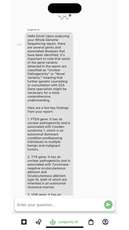 - Educational Resources: Expand your understanding of longevity with our library of personalized articles, direct access to a local AI assistant to learn more about your own health, PDF generation and more.