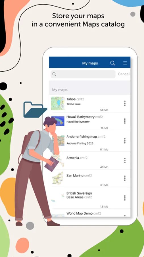 It is designed to work with maps in a special mobile format CMF2. To export your maps from other formats to this one, use the desktop application for creating CMF2 files from geodata and geolocated images of territories - eLiteMap Creator.