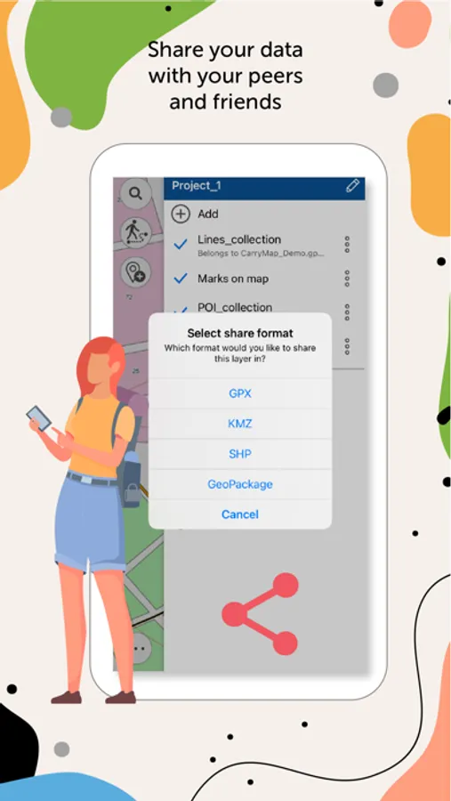 - Share collected data in GPKG (GeoPackage), GPX, KML/KMZ and SHP formats.
