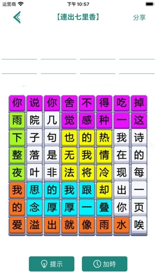 • 將打亂順序的歌詞,古詩,網絡熱梗等按順序全部連出來。