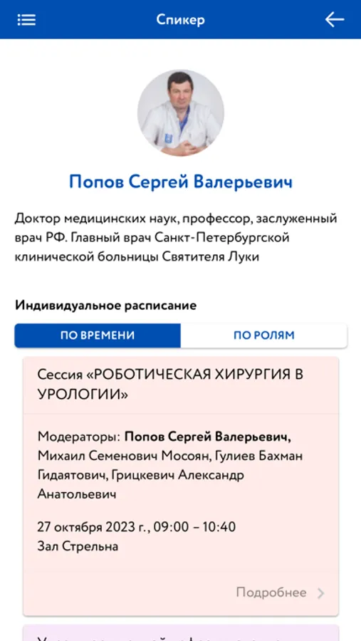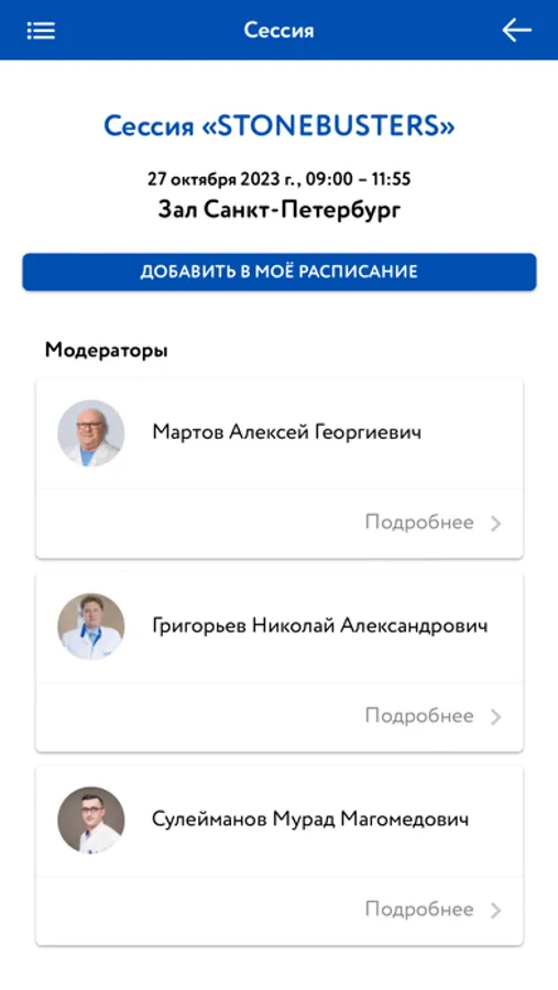 • Список Экспертов и Спикеров с индивидуальными расписаниями