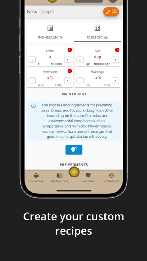 Versatile dough calculator suitable for crafting various types of dough, including, pizza, bread, and focaccia.
