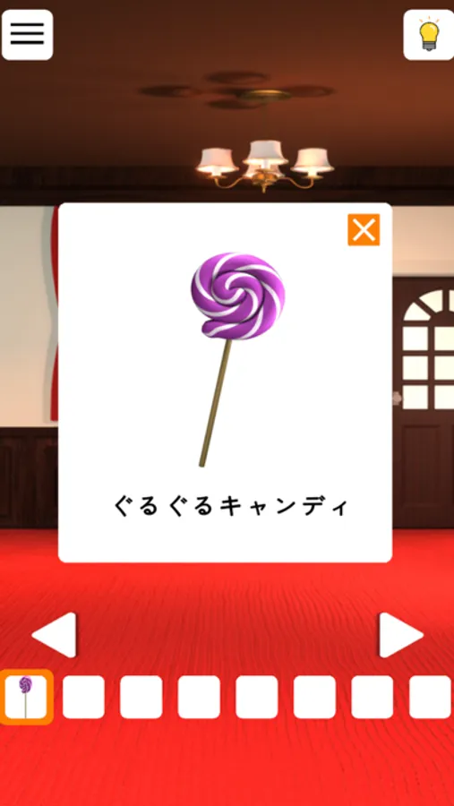 ・画面右上のヒントボタンを押すと、ヒントが見れる。