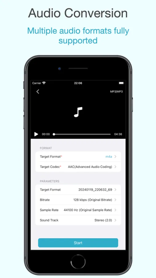 Audio Format Conversion: Professional audio format conversion settings to maintain the original audio quality. Supported formats include wav, mp3, aac, m4a, flac, etc.